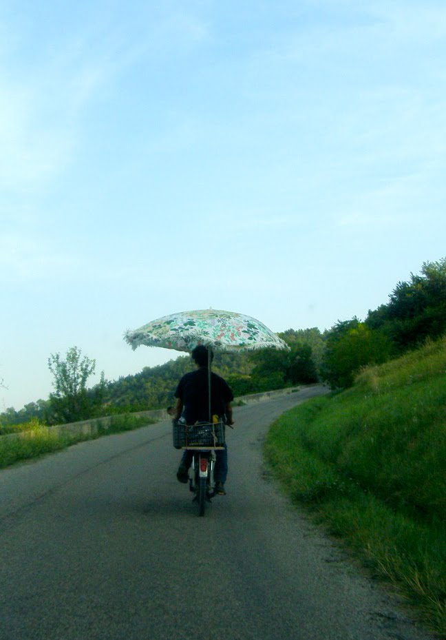 It’s hot, so naturally you would attach a garden umbrella to the back. I mean who wouldn’t?