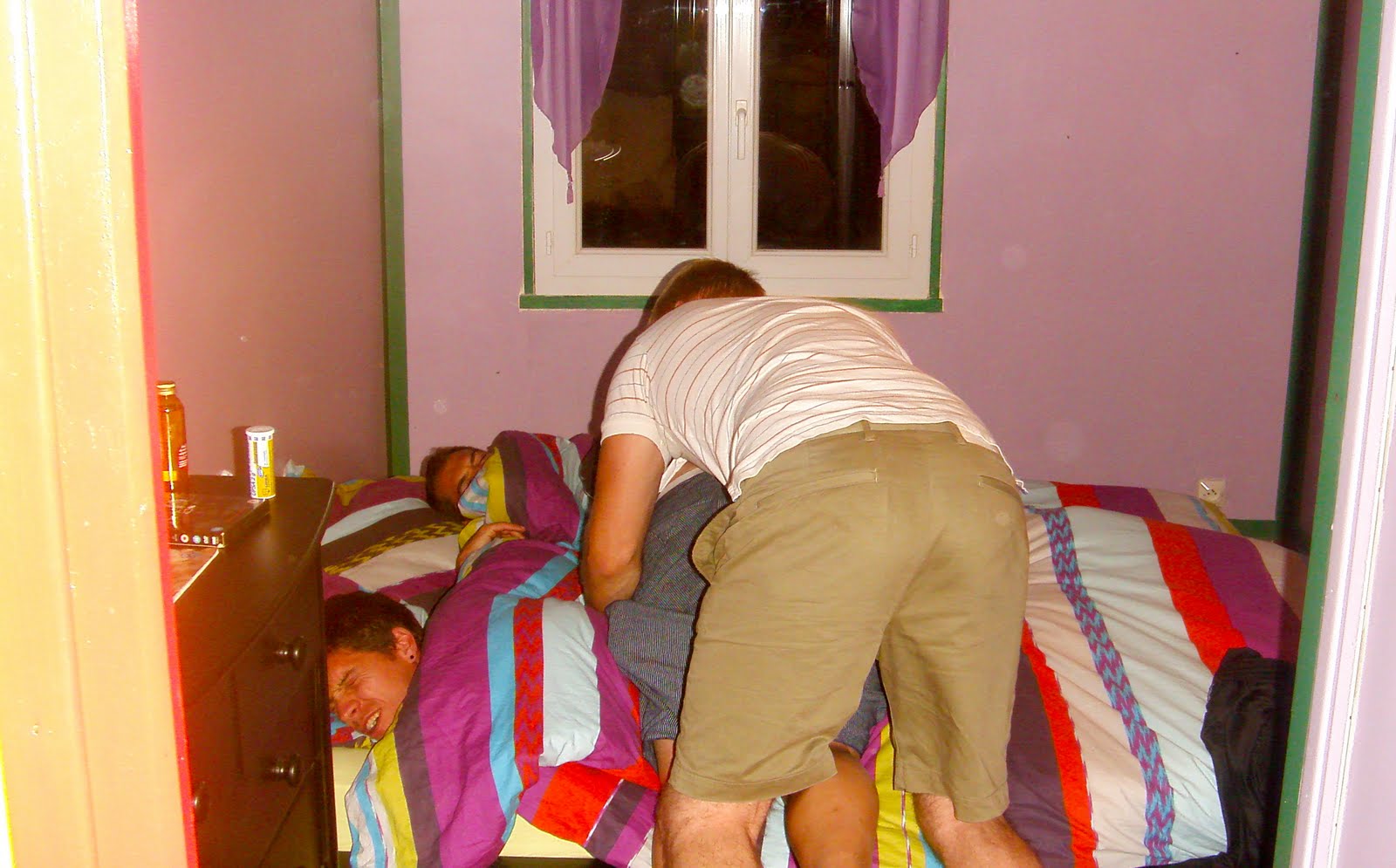 Which looks crazy shady, but is actually quite innocent. It’s The Husband and Gatz rugby tackling a sleeping Honey Jr and Brother-in-Law.Â