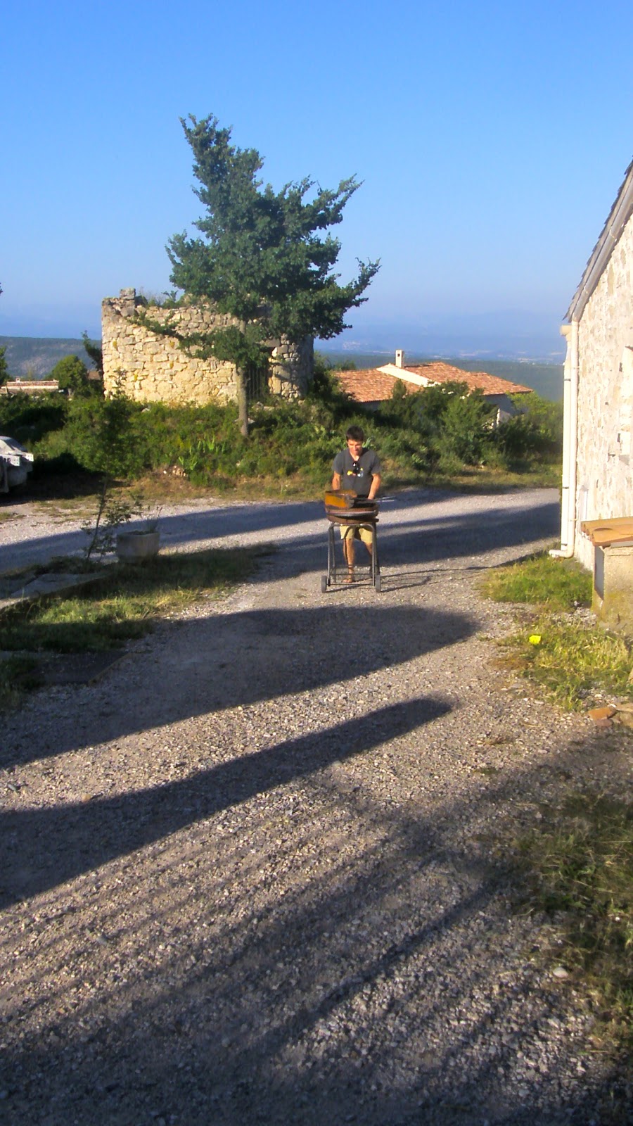 The boys had left him without any help and little Honey Jr pushed that grill all the way from Brother-in-Law’s house (OK, it’s not THAT far, but it is on the other side of the village).