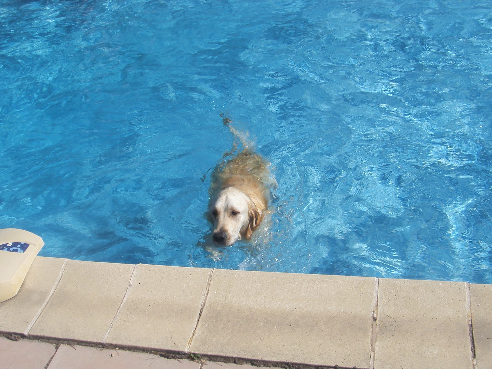 Not wanting to be left out of all of the cooling off fun, Clementine joined les enfants in the pool for a quick dip (easy choice because there was no way we were sharing any of our Champagne with her).Â