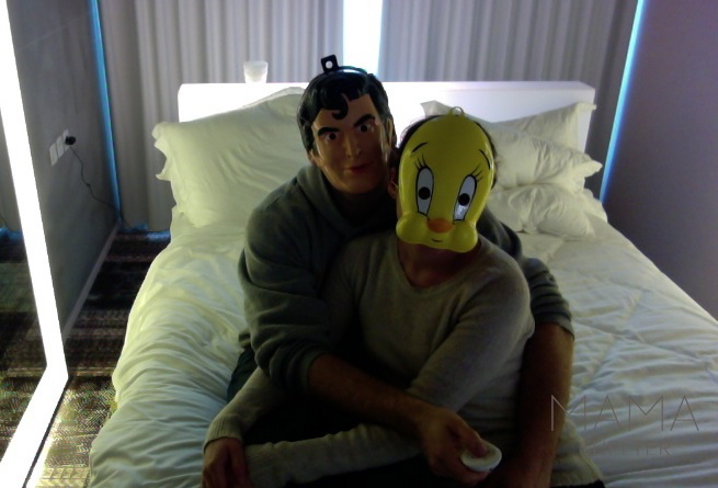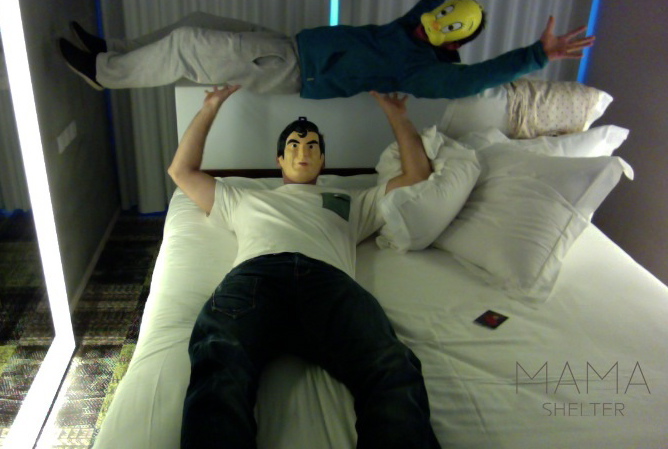 Luckily, Mama Shelter’s wall mounted Macs and cartoon masks meant we could take these photos which kind of made up for the whole not being able to play baby-foot on a pink foosball table…