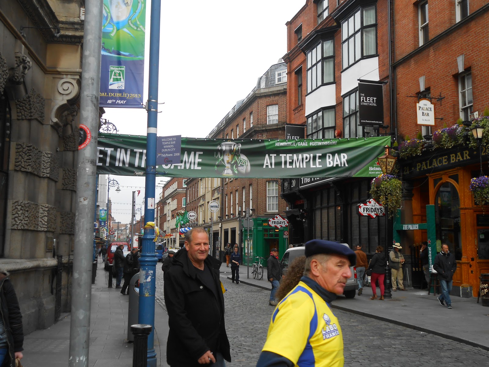 I forgot how cold and damp Dublin could feel. I’m not sure how I could have forgotten that, I spent six years living with it and countless holidays as a child shivering to the bone, but I guess living in Le Petit Village has made me delicate. It’s not the cold that’s bad, it’s the damp. The air feels wet, and not in a hot, humid way. And another problem with the damp, it tends to come with dull grey skies. Fortunately, Dublin is a pretty festive city and that makes up for it some, and on Heineken Cup weekend, it was extra festive.