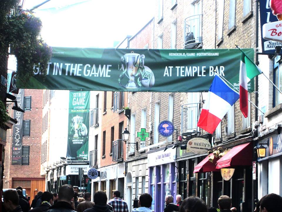 Now you know that I get like a D- in the photo department,I try to remember to snap photos, but then I get so excited just being in the moment that I forget, and then the moment passes. I should have taken loads of photos of the city, because 1. it was full of Clermont and Toulon supporters walking around in head to toe team gear (lots of yellow and blue, or red and black) and 2. loads of pubs had red & black and yellow & blue balloons decorating the outsides. Dublin certainly did roll out the rugby red carpet and I failed to capture it, I apologise.