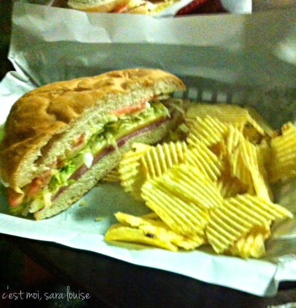 // I may be having a hard time getting my hands on a good baguette, but I have been able to take a big ol’ bite out of something that I had been missing for years… this my friends, is a Brainstorm. It’s salami, ham, turkey, cheddar, swiss, lettuce, tomato, onion, mayonnaise and mustard, and for me, it tastes like high school. Many a school lunch was spent munching on one of these pockets of deliciousness. Man, it tastes good to be home!